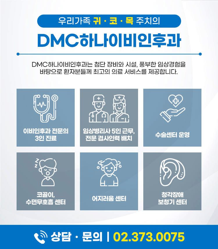 DMC하나이비인후과에서는 목이 염료의 원인인 편도선염 수술 시 크게 두 가지 방법을 사용합니다. 편도선 전체를 제거하는 편도선 절제술과 편도선의 일부분만을 절제하는 편도 부분 절제술입니다만. 편도전 절제술의 경우에는 3일 정도 입원하여 예후를 지켜봐야 하며, 환자의 심리적 안정과 안전한 수술을 위해 전신 마취를 시행합니다. 편도선염의 증상은 방치하면 더 심해지고, 각종 부작용을 일으킬 수 있는 만큼 증상이 나타나면 즉시 병원을 방문합니다. DMC하나, 이비인후과에 대한 자세한 정보가 필요하시면 아래 배너를 클릭하여 공식 홈페이지(모바일 홈페이지도 가능)를 방문하시면 일반 진료예약, 검사, 수술일정, 수면다원검사, 양압기 재처방을 받으실 수 있습니다. 전화 예약은 02-373-0075로 문의 바랍니다.