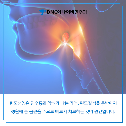 안녕하세요! 환자에게 건강과 행복을 전하는 DMC하나비인후과입니다입 안쪽, 목 입구의 양쪽에는 편도라고 하는 기관이 있는 것입니다. 편도선은 입과 코를 통해 우리 몸 속으로 침입하여 들어오는 세균과 바이러스를 막아주는 항체를 생성하여 우리 몸을 1차적으로 방어하는 것입니다. 그러나 이 부위에 염증이 생기면 목은 바삭해지고 침을 삼킬 때 목에 뭔가 막힌 듯한 느낌이 드는 목이 염료 원인의 편도선염 증상이 나타나게 됩니다. 대개 목감기와 혼동하는 경우가 많기 때문에 제때 치료하지 못하고 시기를 놓쳐 버리면 만성 질환이 될 수도 있어요. 오늘은 DMC불꽃과에서 편도선염의 증상과 치료방법에 대해 알아보겠습니다.