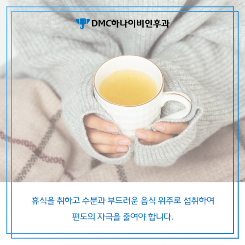 DMC나이비인후과에서 목의 염료원인 편도선염을 치료함과 동시에 환자분들도 가정에서 꾸준히 돌보시는 것이 좋습니다. 충분한 휴식을 취하고, 수분을 많이 섭취하고, 부드러운 것을 중심으로 취하며, 편도선의 자극을 줄이면서 회복하는 것이 좋습니다만. 생리식염수로 가글을 해주는 것도 좋아요. 만약 통증이 심하면 수술 부위 근처에 얼음 주머니를 대고 찜질을 하거나 아스피린, 코데인 설페이트도 가능합니다. 가장 중요한 것은 편도에 자극이 가해지지 않는 것이므로, 자극적인 식사를 하거나 성대를 많이 사용하지 않고 가능한 한 천천히 쉬는 것입니다.