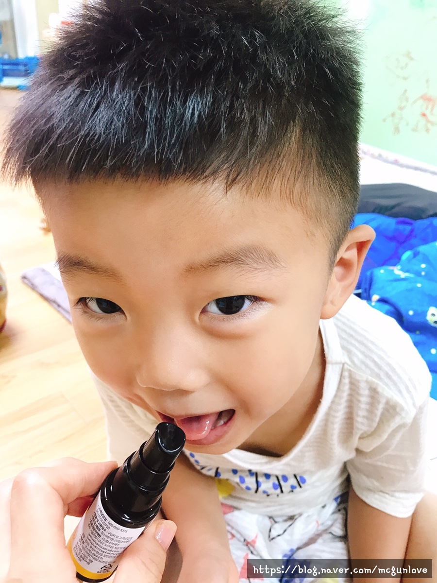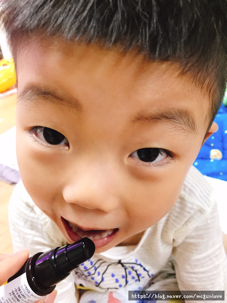 스프레이 형이라 아이들이 입을 열면 거부감 없이 칙칙 세 번만 뿌려주면 됩니다하루에 세 번 뿌리기만 하면 되는데 처음에는 제대로 준비했지만 지금은 유치원에서 낮 생활을 하고 있기 때문에 아침 저녁으로 사용하고 있습니다.