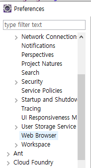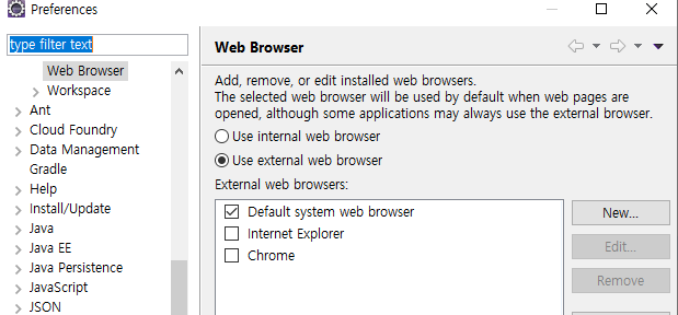 Use external web browser를 선택하면 이클립스 내에서 실행이 되지 않고 크롬으로 실행된다.