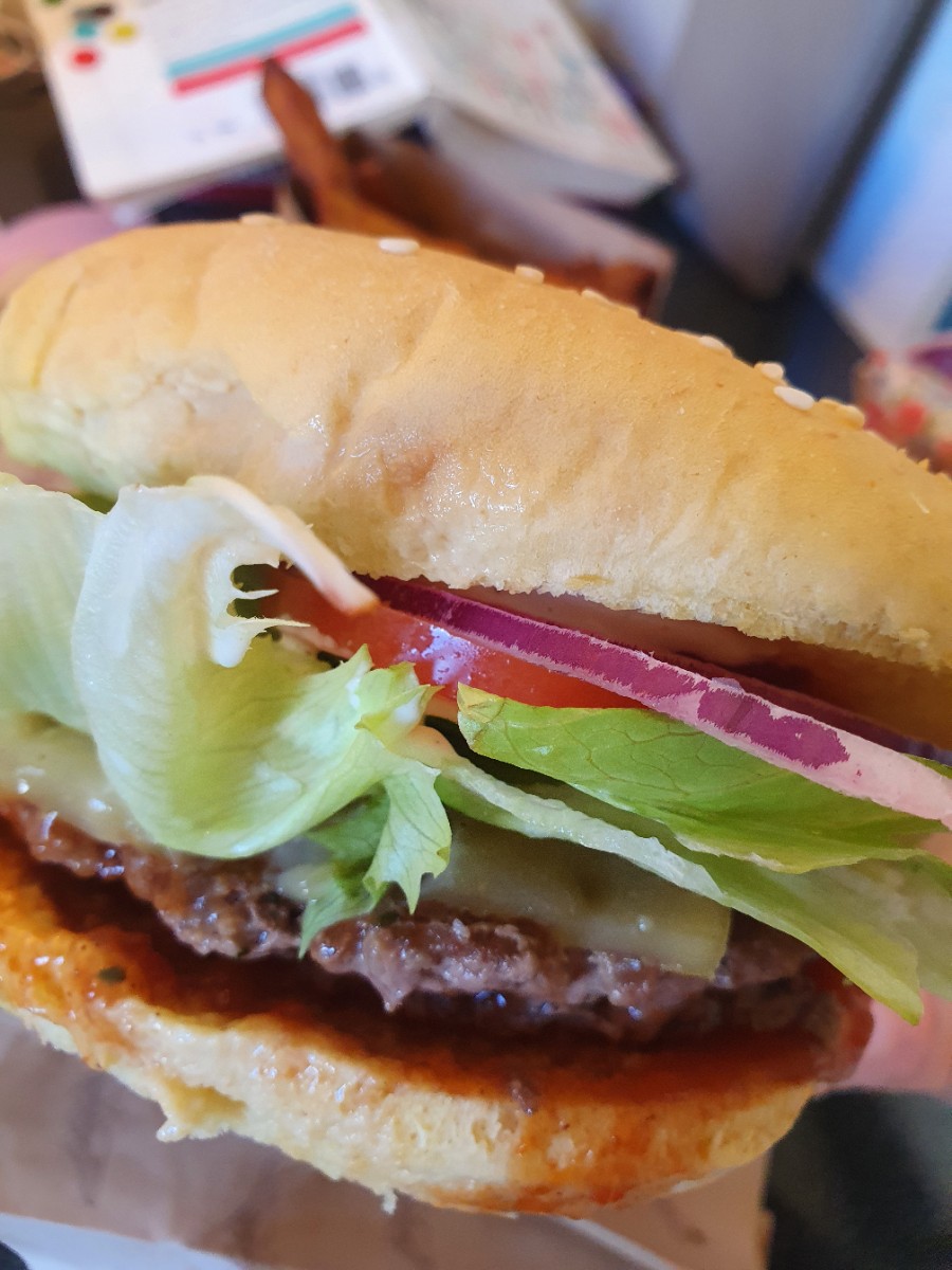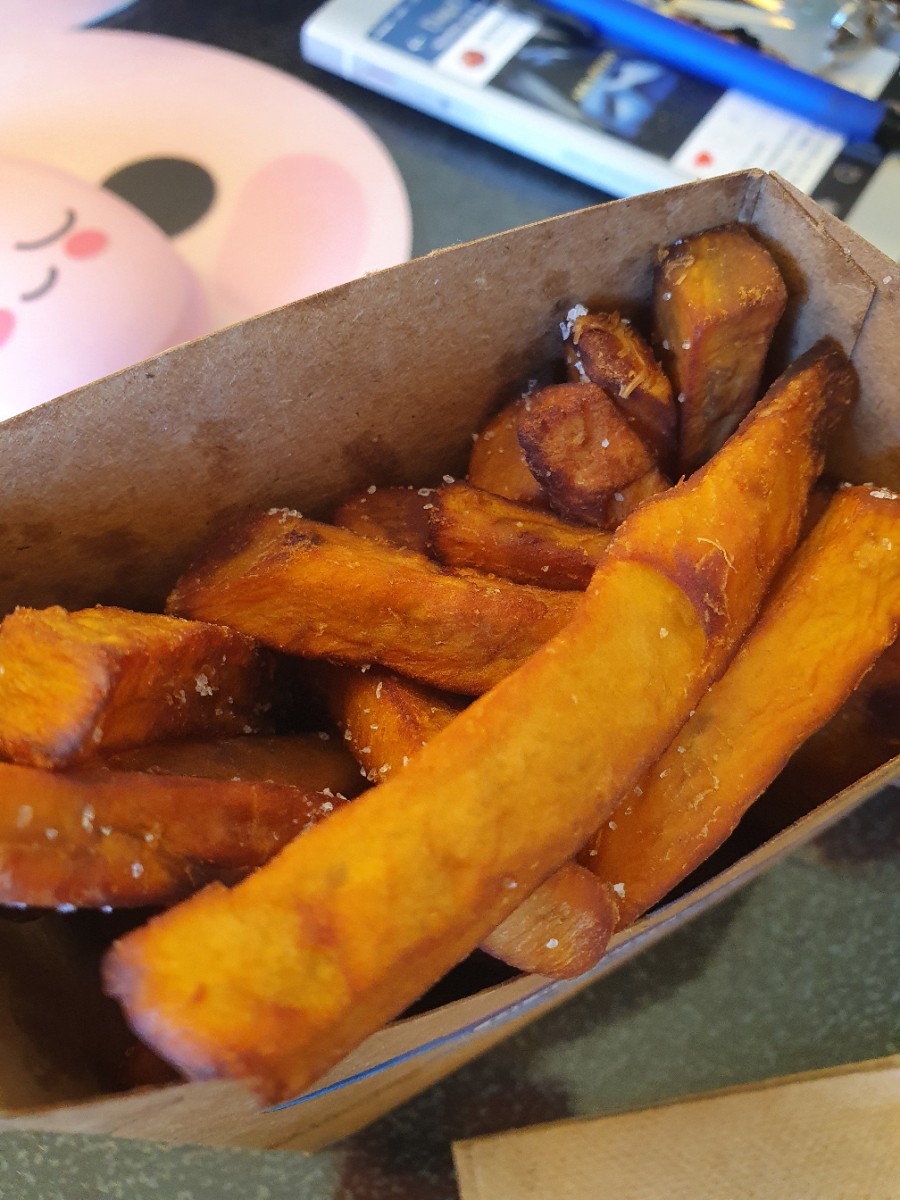 이 나라의 햄버거는 원래 큰 것 같아 ㅎㅎ Hunger burger 처음 먹었을 때는 얼굴보다 큰 사이즈에 깜짝 놀랐는데 버거 퓨엘도 만만치 않게 컸던 패티가 역시 맛있었는데 좀 질리는 맛 ?? 비트가 싫어서 비트가 없는 메뉴 중에서 골랐는데 다른 메뉴들도 도전해봐야겠어쿠마라칩은 맛있었지만, 케첩소스로 잘못 넣은듯 힌ㅠㅠ