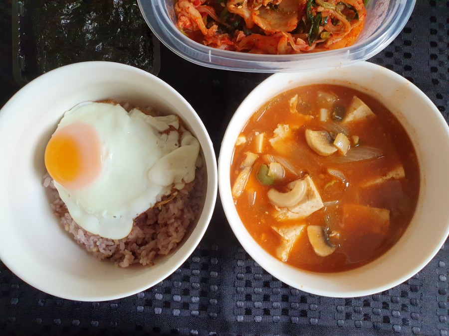 오늘도 모닝 아침부터 열심히 끓인 치킨 JMT였다맛쌤1스푼1, 된장2, 고추장1/2, 고춧가루2 냉동해물, 두부, 청양고추, 양파, 버섯, 두부도 청양고추가 필요해!! 사먹는 것보다 맛 좋아