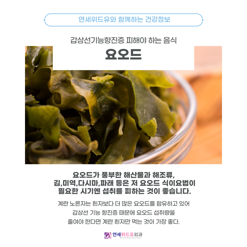 그래서 오늘은 갑상선 기능 항진증이신 분이라면 피해야 할 음식과 좋은 음식에 대해 소개하겠습니다.