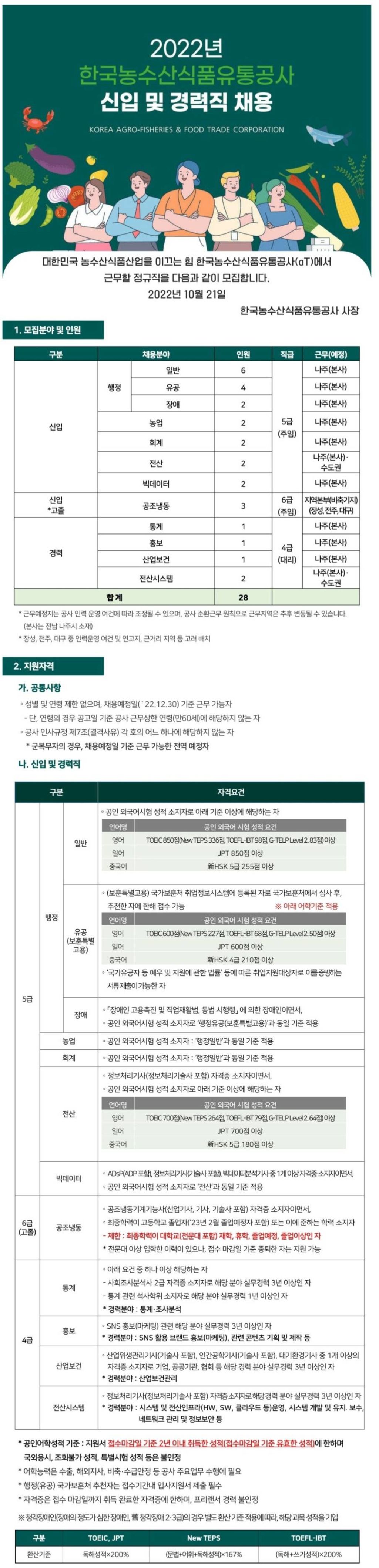 한국농수산식품유통공사, 2022년 한국농수산식품유통공사 신입 및 경력직 채용: 인크루트 채용: 한국농수산식품유통공사.temp_img_v3img{width:auto!important;} @media only screen and (max-width:768px) {.temp_img_v3img{width:100%!important;} | 기간:2022.10.21 ~ 2022.11.04job.incruit.com