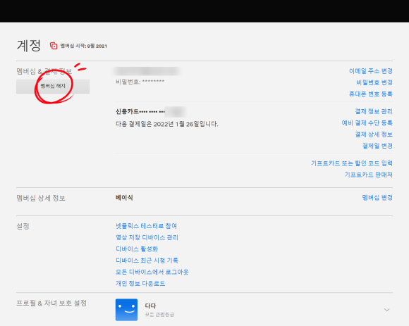 이전에 무료로 한 달 보기 위해 만든 아이디를 잘못 넣어서 몇 달 동안 두 아이디로 결제가 되었습니다.( ´ ; ω ; ` )