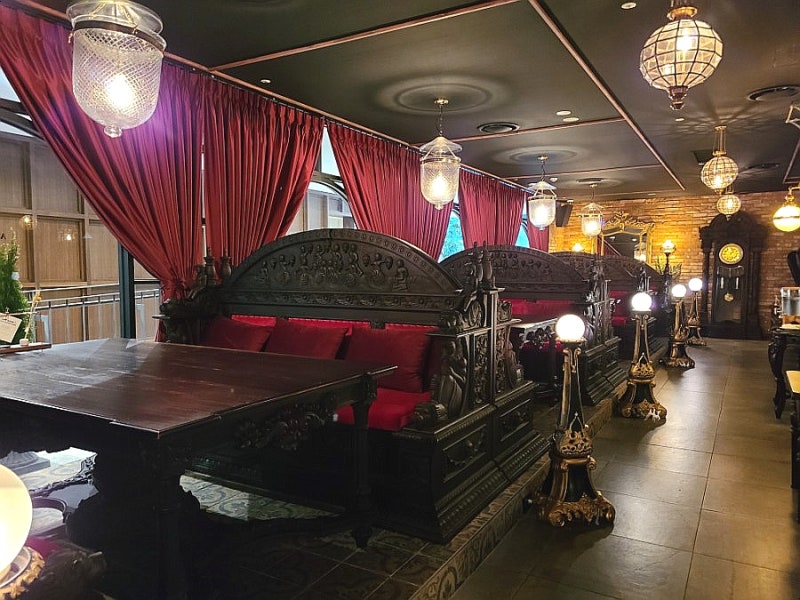 개인적으로 뷔페 가는 재미가 있어서 뷔페식이 아니라서 조금 아쉬웠지만 막상 가보니 역시 서빙해주는 게 편하더라 ㅎㅎ 코스요리로 모듬빵 훈제연어와 게튀김 라비올리 버섯스프 안심스테이크 창치국수 각종 디저트와 커피, 티 순으로 나왔고 와인과 음료 등은 요청하면 서빙을 추가해줬다.