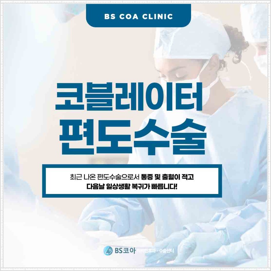 현대의학의 발전과 축복으로 코브레이터라는 새로운 장비를 통해 아픔을 대폭 축소화하였습니다.고주파에 의해 발생하는 저온의 열을 이용하여 절제를 하는 것이군요.저온이기 때문에 조직을 절개함과 동시에 지혈도 가능합니다.주변 조직도 열 손상이 적어 최대한 안전하게 없앨 수 있습니다.