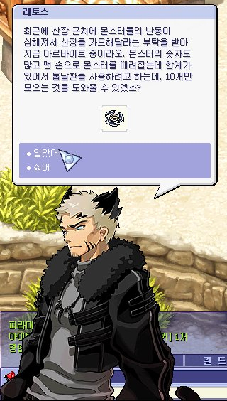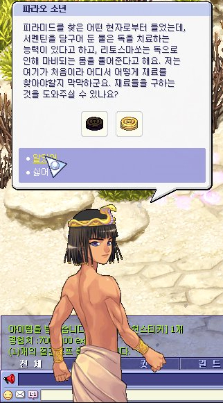 파라오 소년 레토스의 퀘스트를 물리친 후에 탱고 산장에 있는 탱고를 만나 탱고 퀘스트도 깬다.