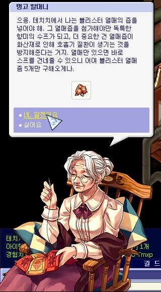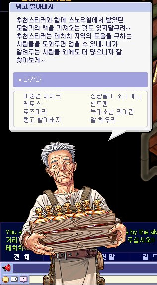 탱고 할아버지와 대화를 하고 추천 스티커를 모으는 퀘스트가 완료된 후 탱고 할머니와 대화를 하며 블리스터 열매 5개를 주어