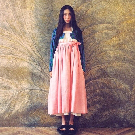 공개한 사진에는 현대식으로 해석된 한복을 입고 따뜻한 분위기를 자아내는 공간에서 포즈를 취하고 있는 이진이의 모습이 담겨있습니다