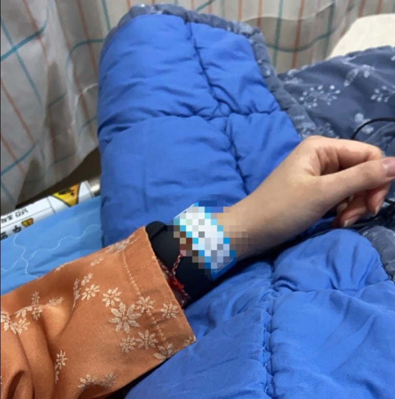 입원복 갈아입기 -> 모든 상의를 벗고(속옷 포함) 맨살에 입원복만 입습니다. 좀 추울 수도 있어요 추위를 많이 타시면 담요를 가져가세요.