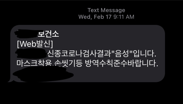 그러면 이렇게 하루 뒤에 이상이 없다는 문자가 와요
