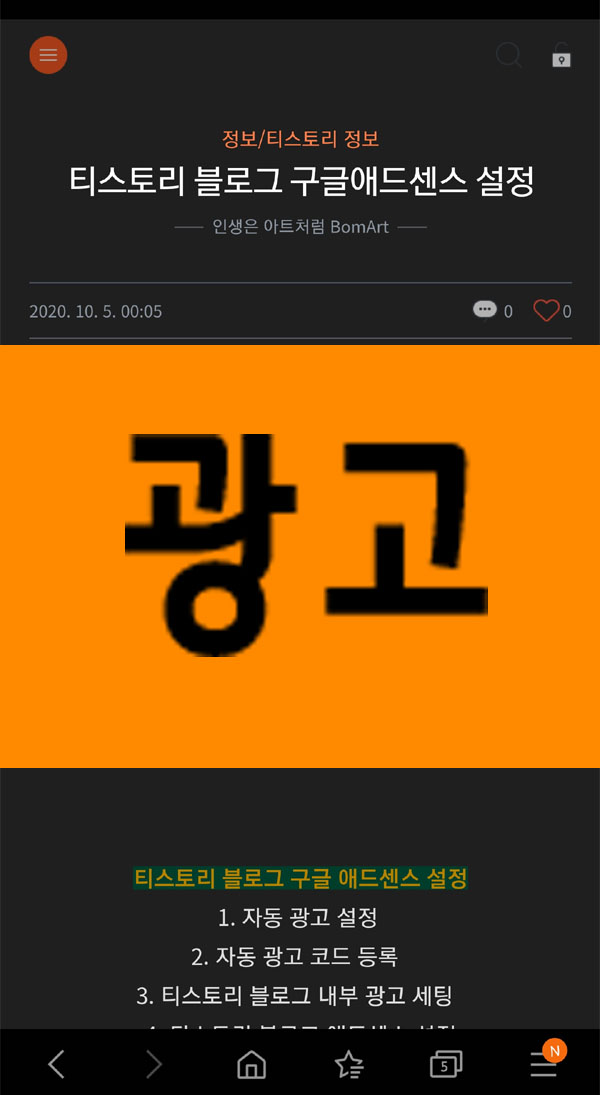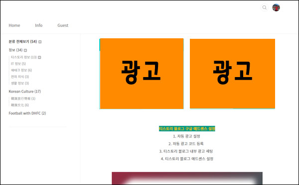티스토리 블로그 애드센스 광고 상단 2개/모바일 1개를 넣는 티스토리 블로그를 운영하는 이유 중 하나인 애드센스 광고입니다.이 어드센스 광고를 많이 노출하면 수익이 날 가능성이 더 높아져요.