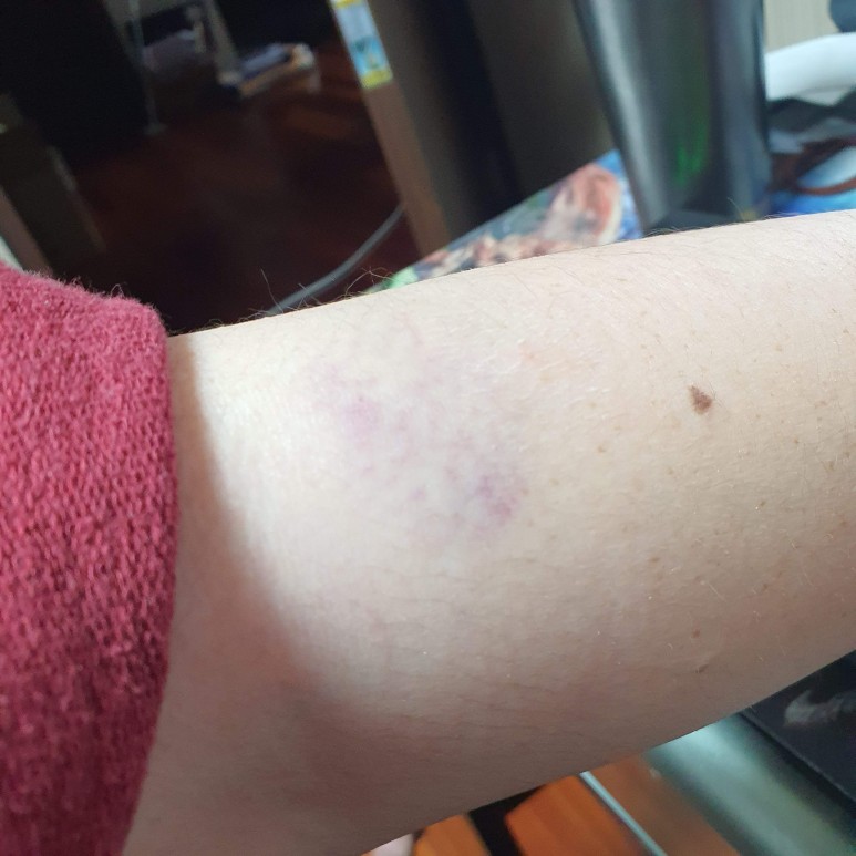 링거를 맞음으로 인한 수많은 멍