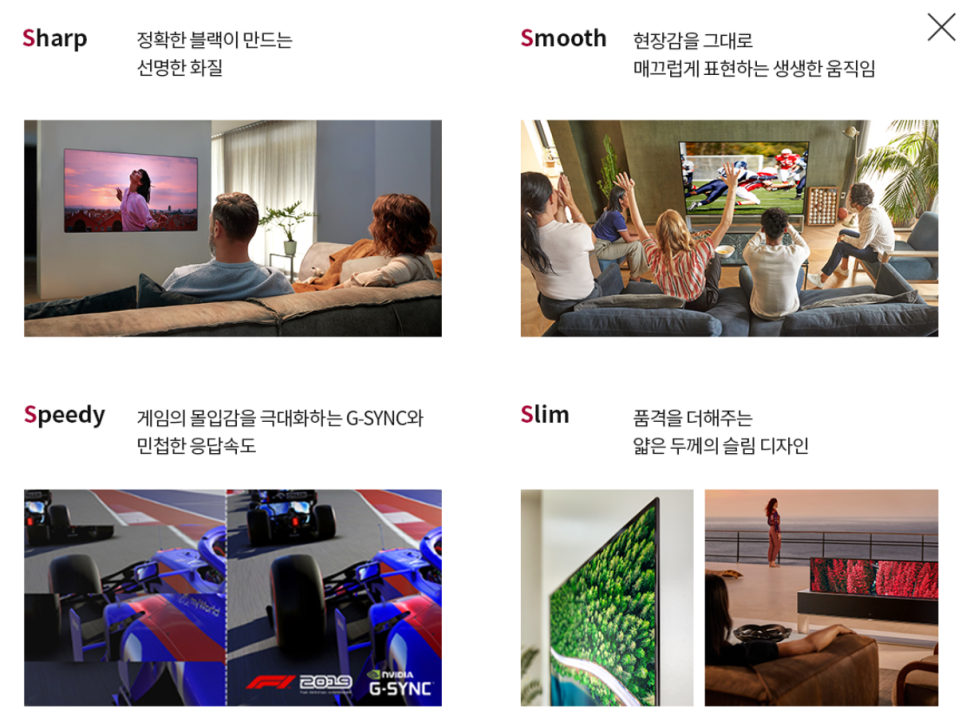 특징 : 위 제품 대비 2배 얇은 올레드 4S 적용 돌비비전 IQ & 아토모스 적용.