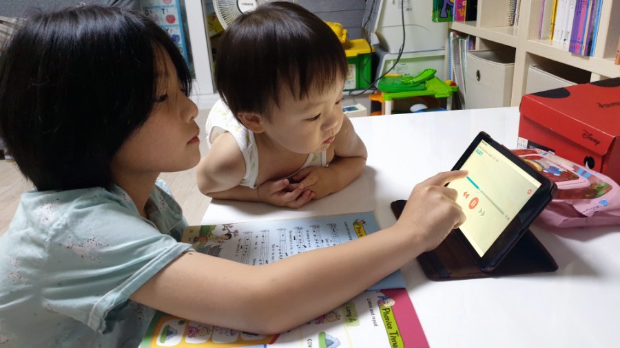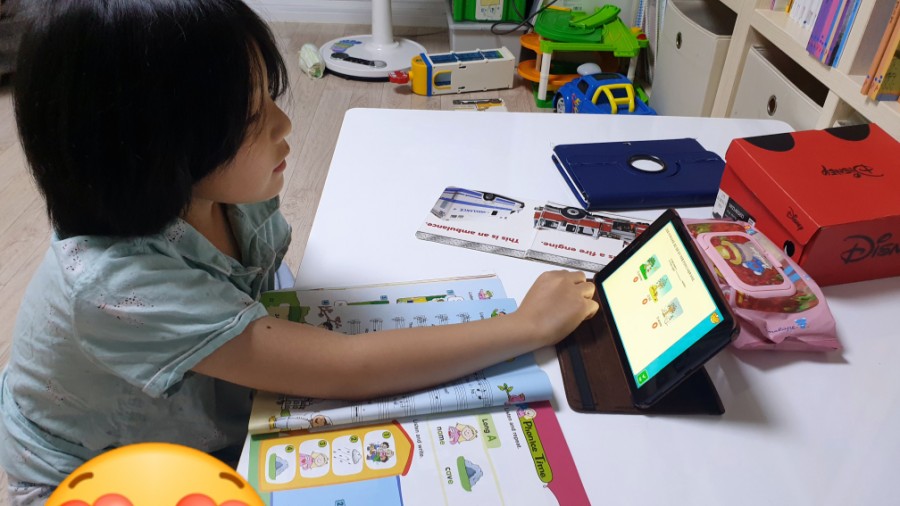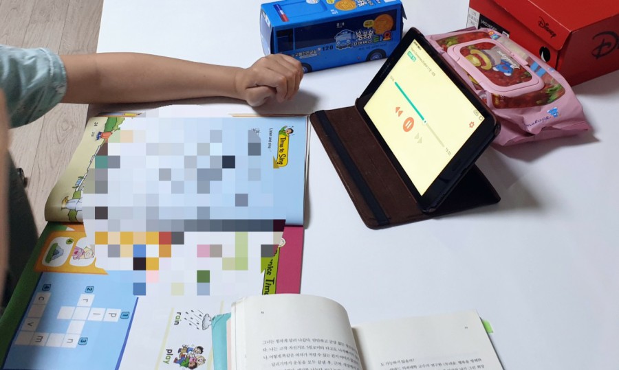 엄마는 어제에 이어 영어공부를 하는 아들 옆에서 #마녀체력을 읽는다.