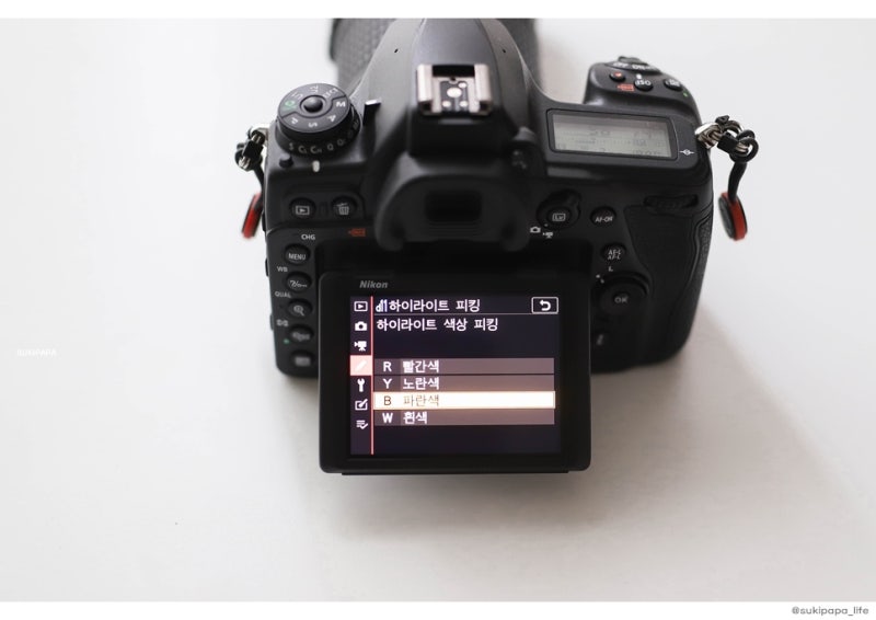 니콘의 DSLR카메라답게 제작이 매우 좋고, 그립감이나 사진 촬영시 셔터음 등 만족도가 높은 바디가 됩니다. 우측 상단에는 미니 디스플레이가 있고 촬영 정보도 확인하면서 촬영이 가능합니다.