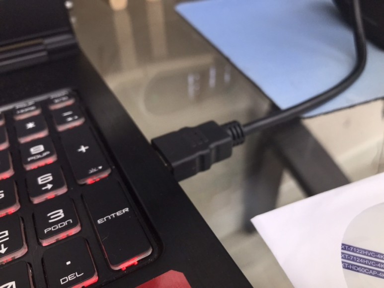 - 먼저 전원을 연결하세요. usb로 노트북에서 전원을 끌어와 캡처 보드에 공급합니다.