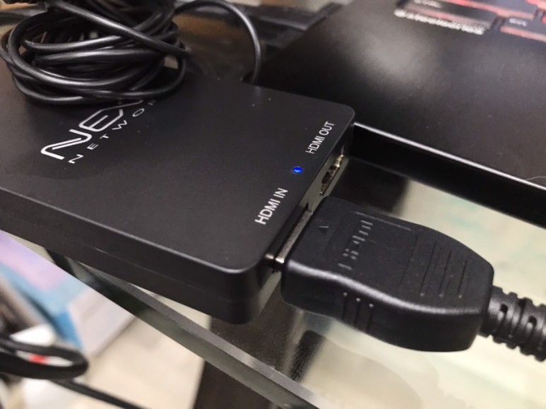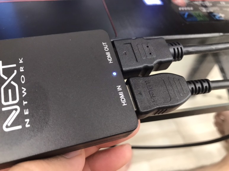 2. 캠코더 영상을 캡처보드로 연결합니다. 캡처보드에는 hdmi input과 output 두가지가 있기때문에 카메라등의 기기는 반드시 hdmi input에 꽂아줍니다.
