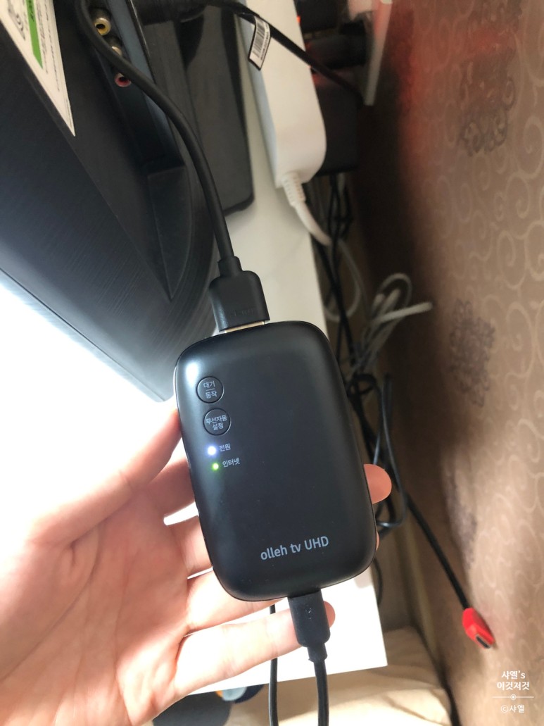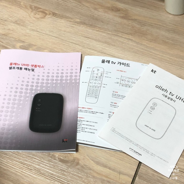 택배로 받은 구성품 (사진 찍은 줄 알았는데 없더라..) 저 큰 셋톱박스는 기존에 가지고 있던 모델이고 신규로 받은 제품은 아주 미니 미니한 디자인 (아래 참조)