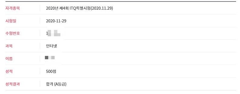 인터넷 과목은 예상 밖의 A등급 만점을 받았다. 현역 군인들이 자격증 가점 때문에 시험을 볼 때 자주 보는 과목이라는 말을 들었는데 느낌이 어떤지 알 것 같았다. 유튜브 영상으로 기출문제를 보고 문제 흐름을 파악하고 팁만 알면 A등급이 쉬워 OAMASTER를 취득하는 데 큰 무리가 없는 느낌이었다.