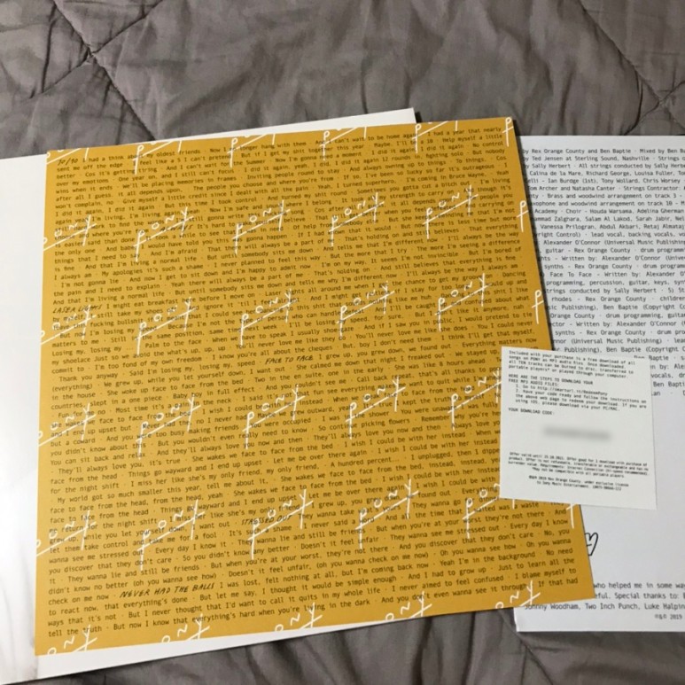 설명서(?)를 찬찬히 읽어봤는데, 전곡 작사, 작곡, 프로듀싱에 악기 연주도 다 본인이 했다니…처음 들었을 때 전체적으로 완성도가 상당히 높다고 생각했는데 막연히 이전 앨범이 성공해서 좋은 프로듀서를 썼을 거라고 생각했는데 오히려 본인이! 직접! 모든 걸 다 담당했다는 건 상상도 못했던 (물론 공동 작곡가 겸 프로듀서가 있지만) 내 나이 또래인데도 다재다능하구나. 대단해