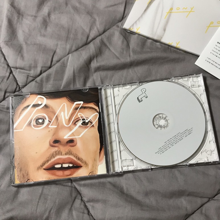 바이닐은 이렇게 생긴 앨범 아트에는 ‘PONY’라고 적힌 노란 글씨가 없었는데 비닐에는 있다.근데 이게 너무 예뻐서 비닐 벗기면서 제발 비닐에 안 적혀 있길 바랐다.