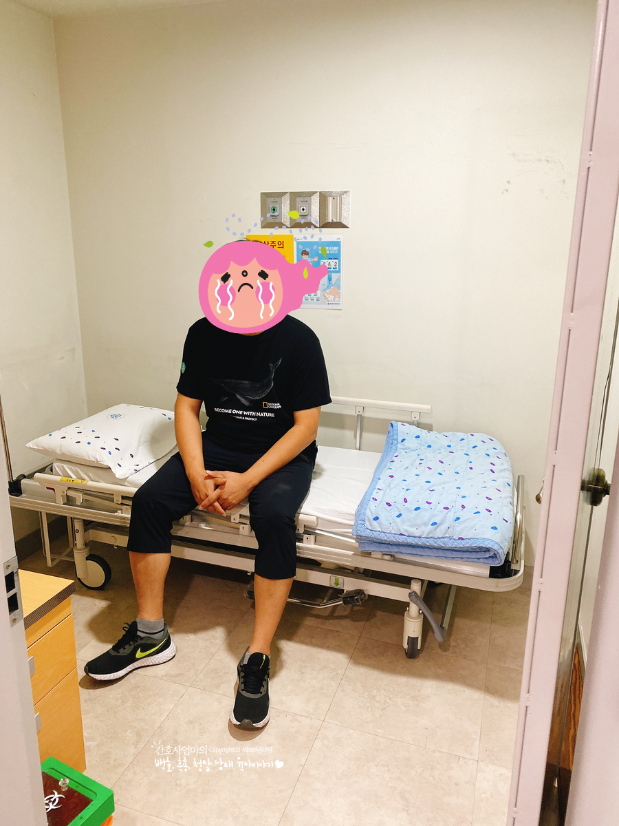 남편은 주사가 오기 전에 기다리고 있었어요.명지병원 핵의학과 안에 있는 안정실입니다.