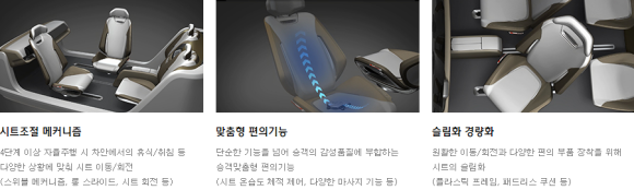 운전하는 공간에서 휴식, 회의, 취침공간 등으로 자동차 실내 기능이 확장됐을 때 변화하는 시트의 움직임과 기능, 형태 등을 선제적으로 연구개발하고 있습니다.자율주행에 관한 뉴스